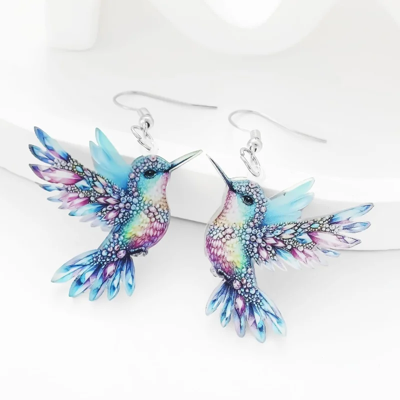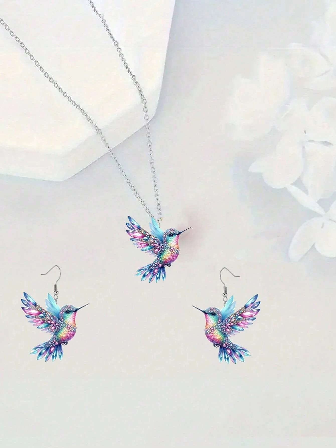 Elegant Acrylic Colorful Hummingbird Jewelry Set